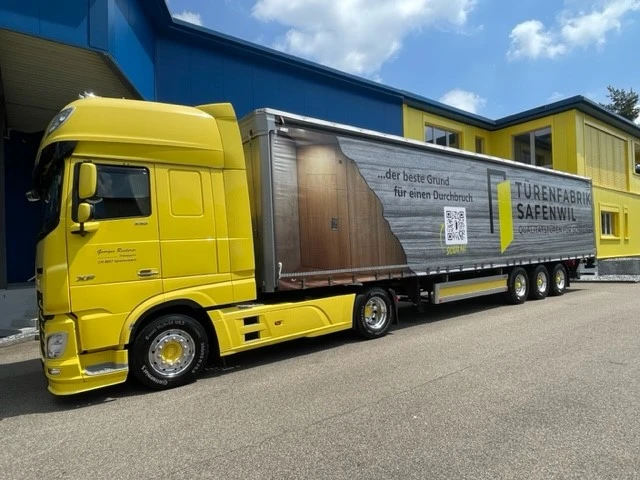 Wir bedanken uns für die bisherige Partnerschaft mit der Türenfabrik Safenwil AG und freuen uns weiterhin die Zusammenarbeit auf unserem LKW zu zeigen - ab jetzt mit dem neuen Design auf der Blache.